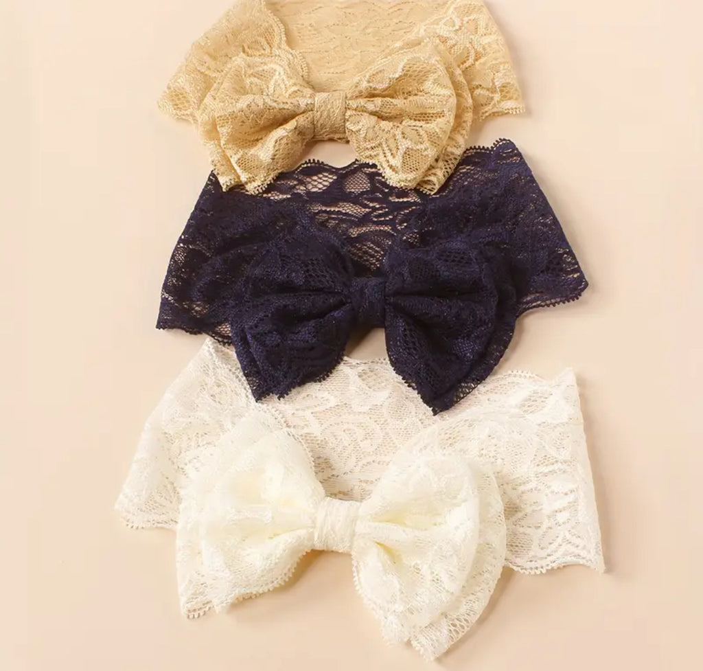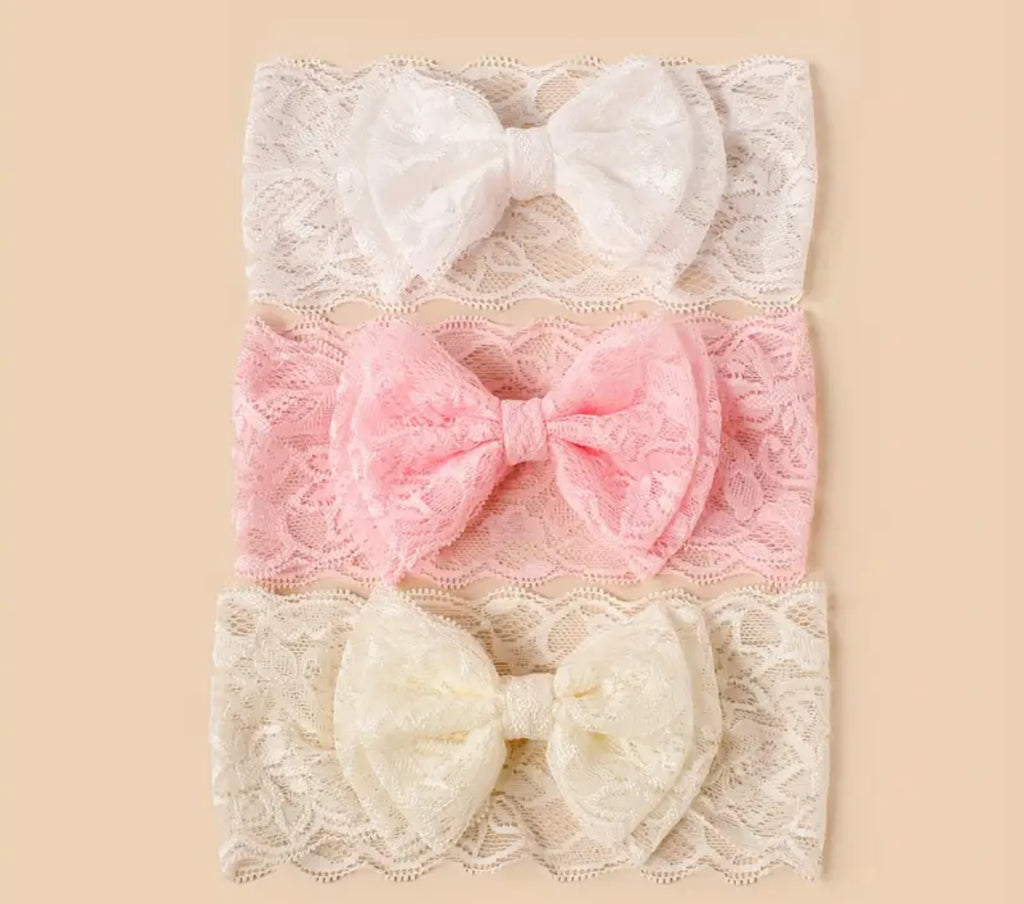Pre-Order Double Bow Lace Embroidered Headband Set (3pcs) Pre-Order Double Bow Lace Embroidered Headband Set (3pcs)